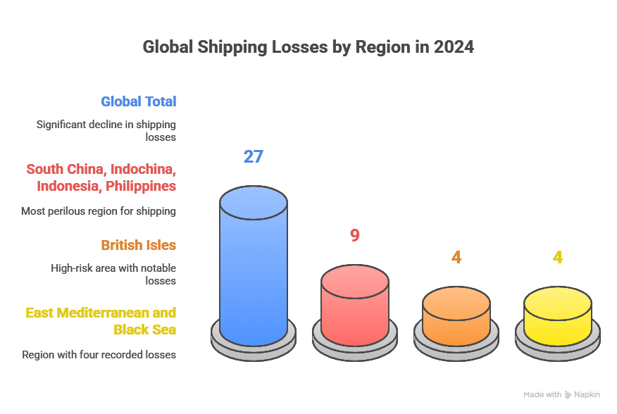 In 2024, the global shipping fleet recorded only 27 total losses, marking a 20% decrease from the previous year and a 75% decline since 2015. This significant improvement reflects enhanced safety protocols and technological advancements.